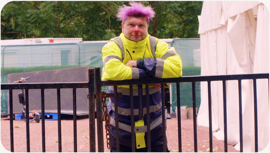 A security guard and ex-traveller uses his experience of being a tenth-generation circus performer to engage in his first love: clowning.